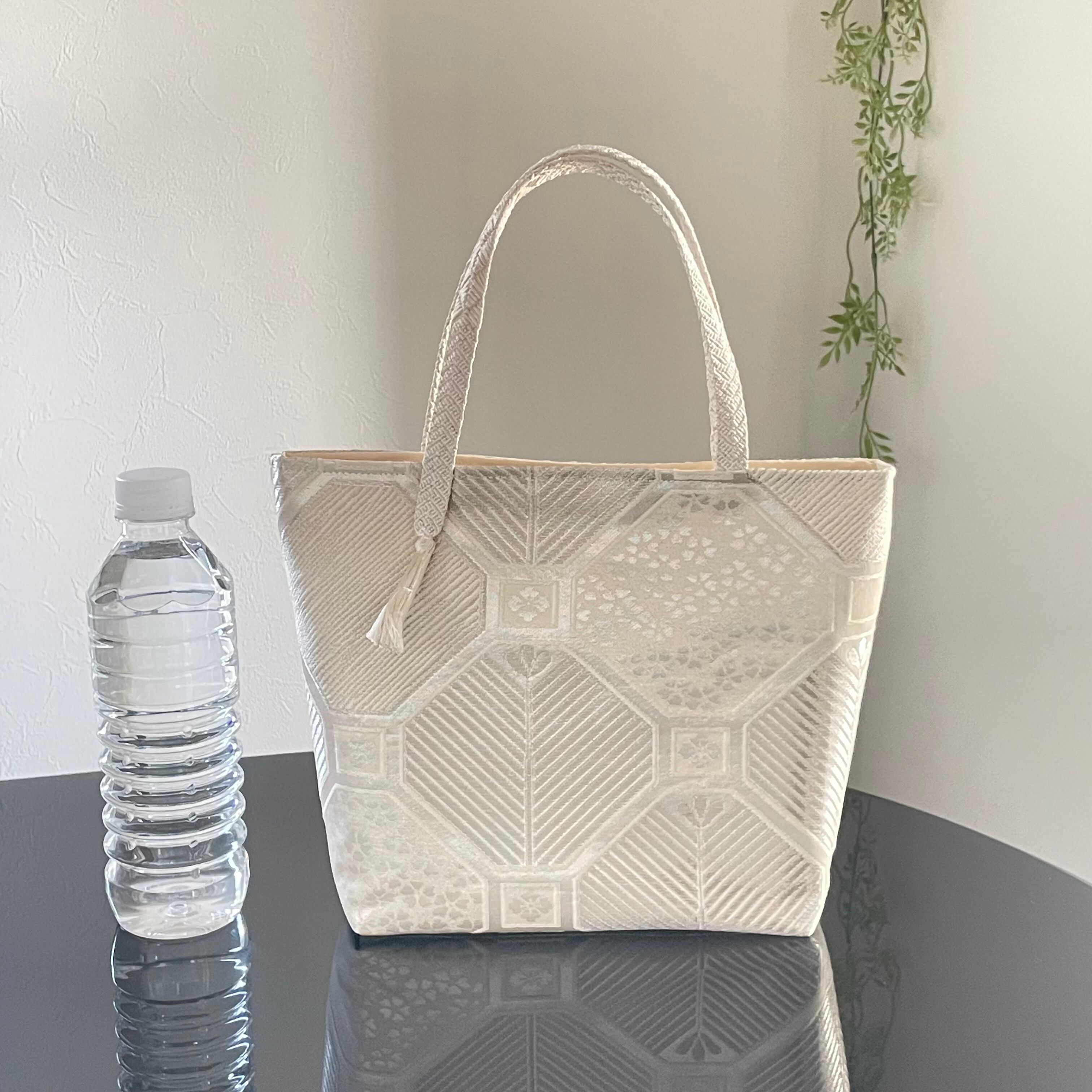 帯リメイクバッグ 蜀江に桜と松 トートバッグ Mサイズ 和装バッグ