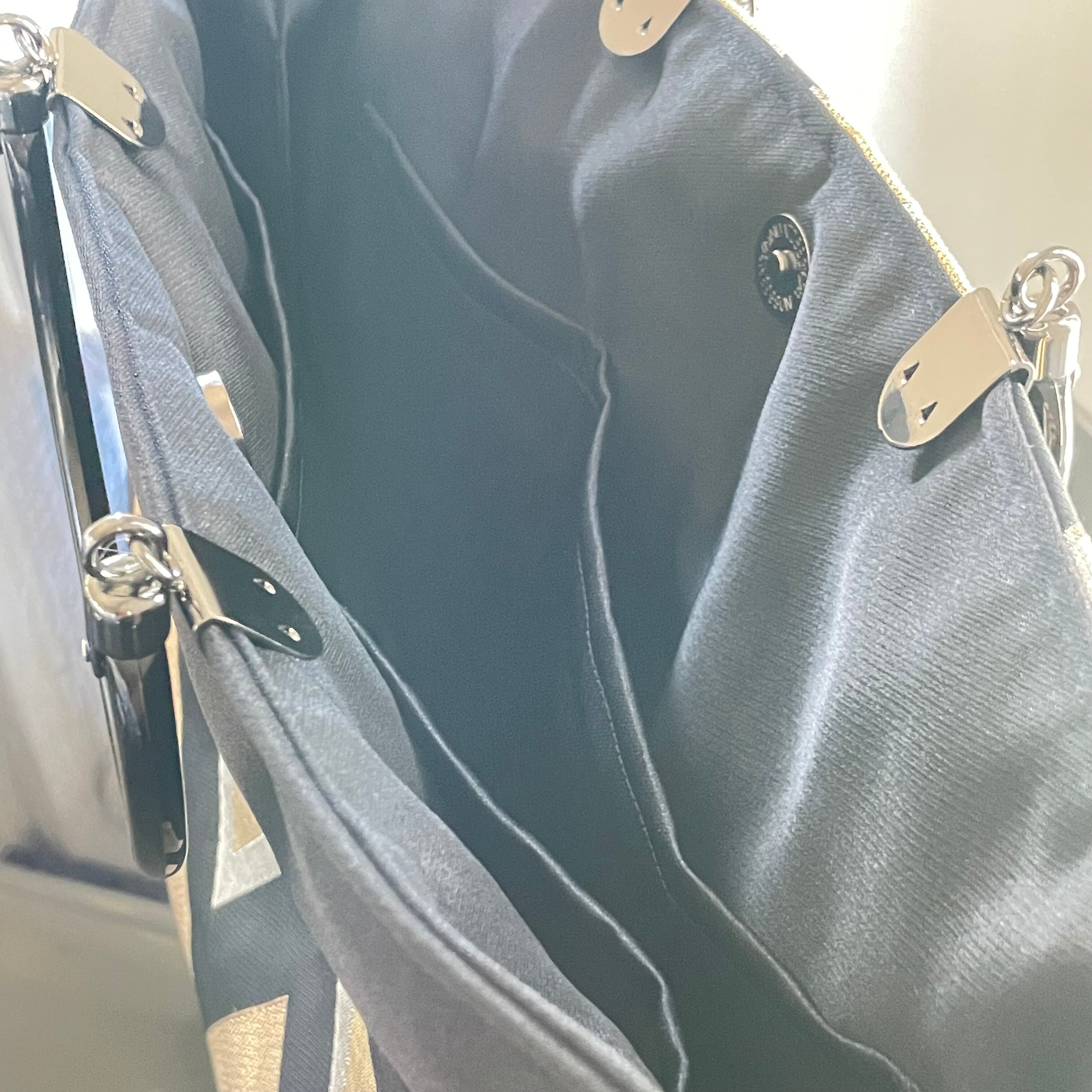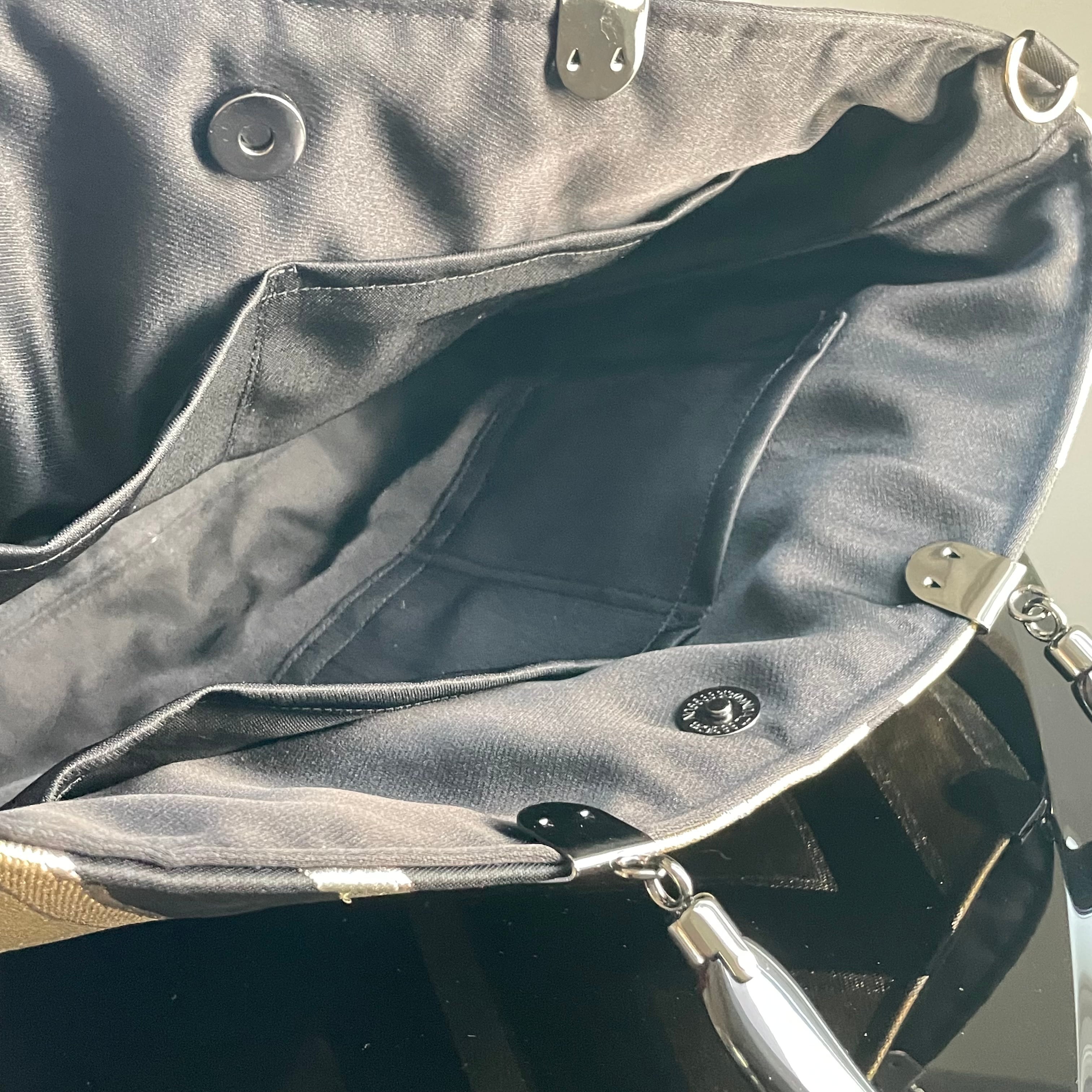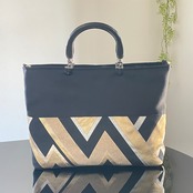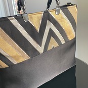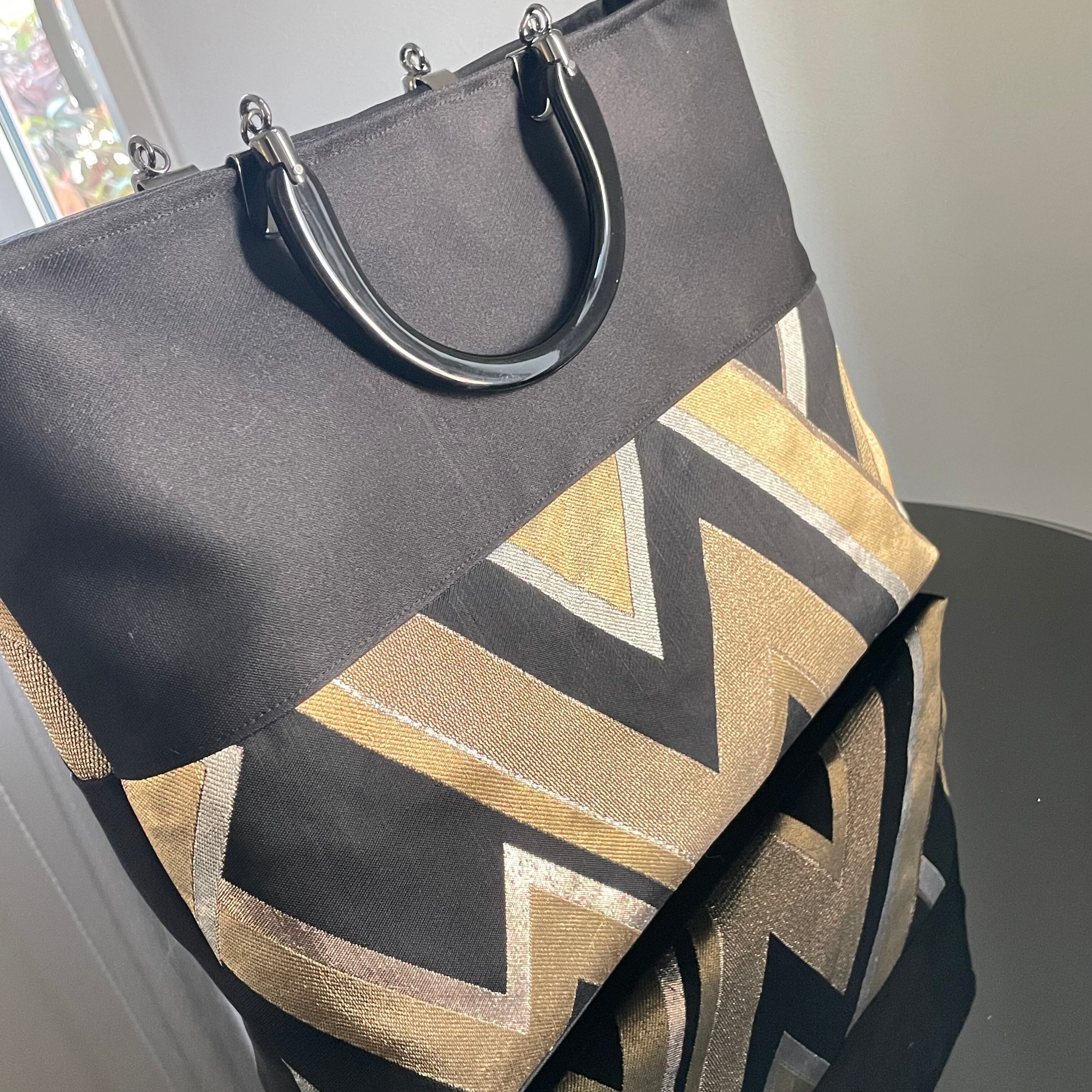 帯リメイクバッグ 黒と金の幾何学文様 トートバッグ A4サイズ 和装バッグ