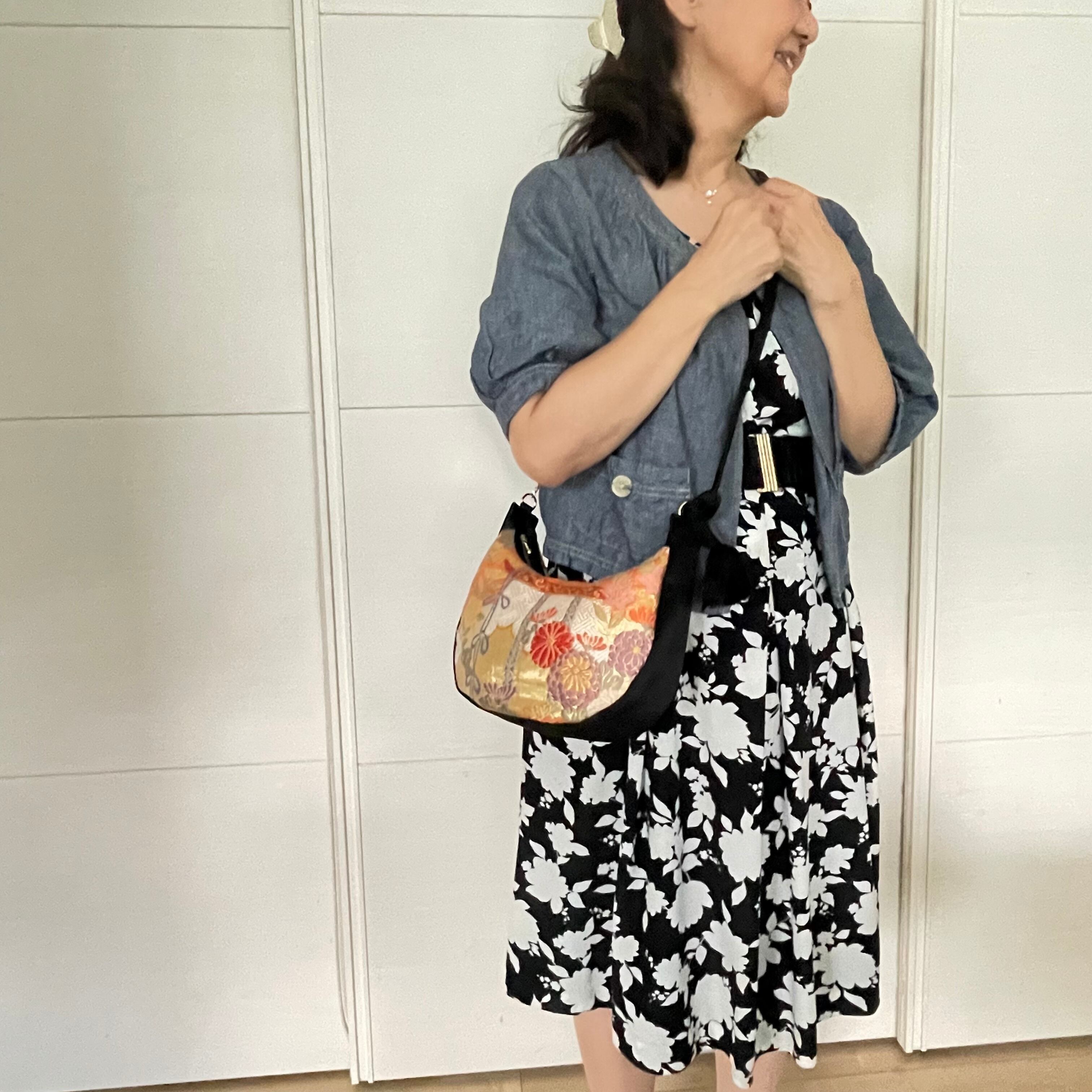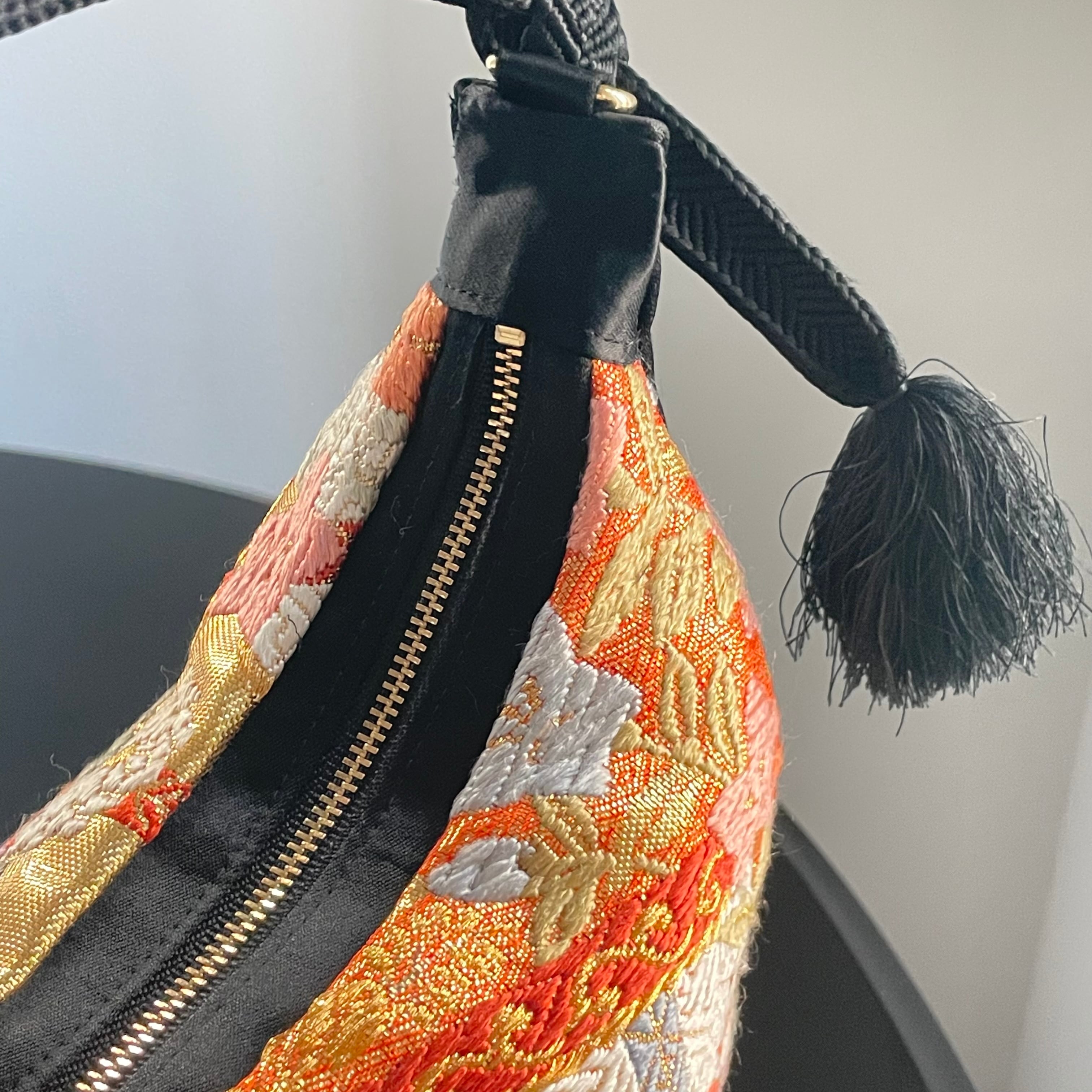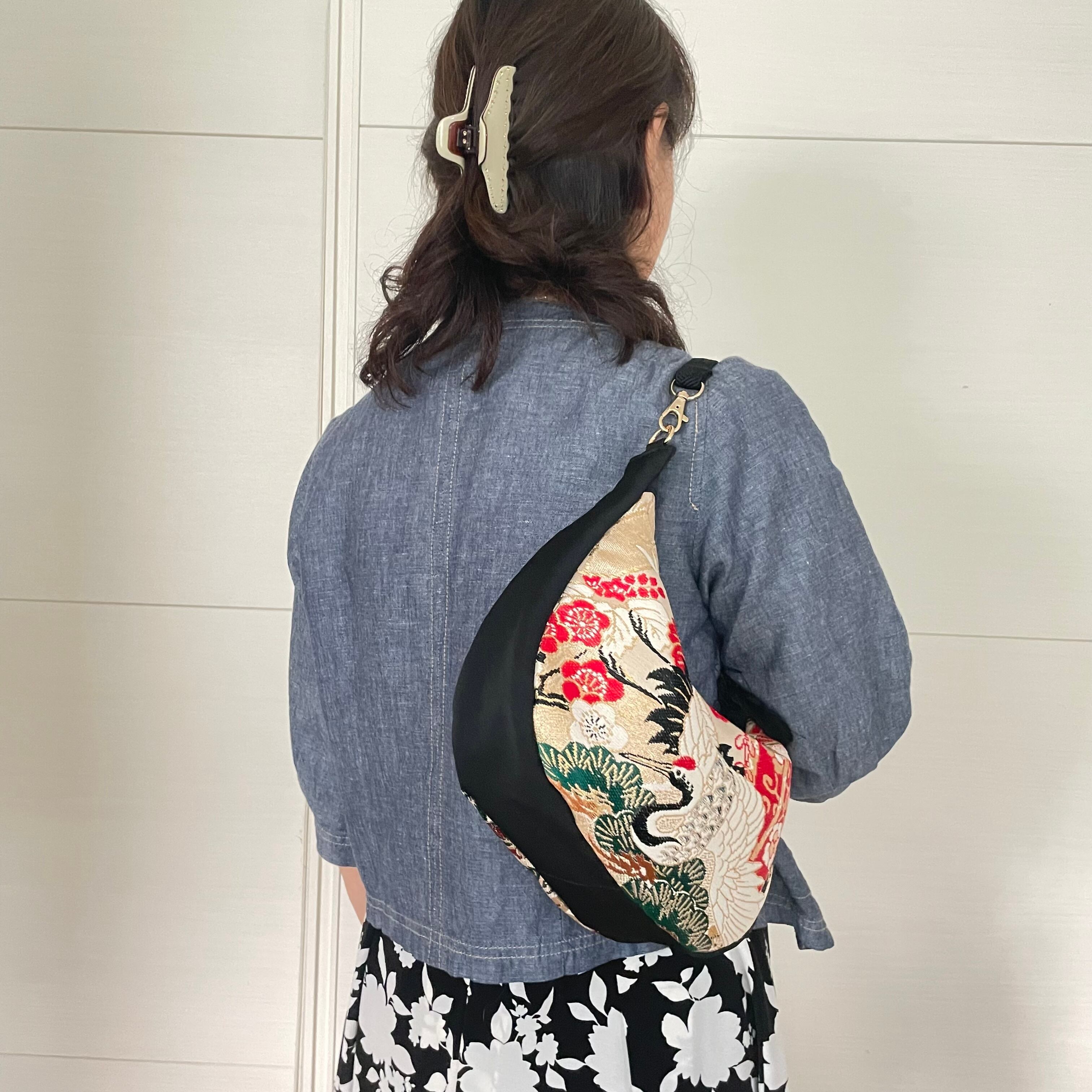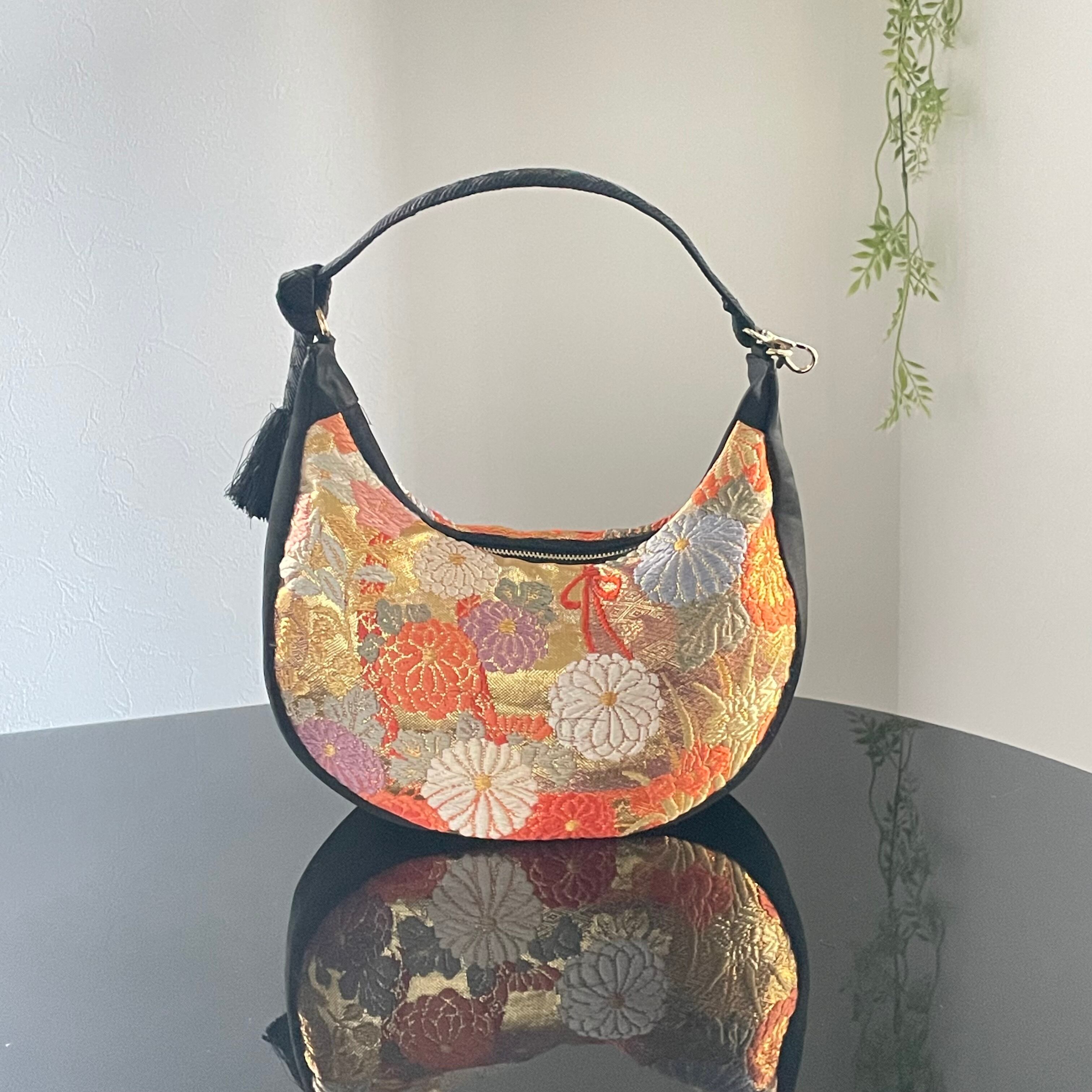帯リメイクバッグ 三日月バッグ 几帳 ショルダーバッグ ハーフムーンバッグ