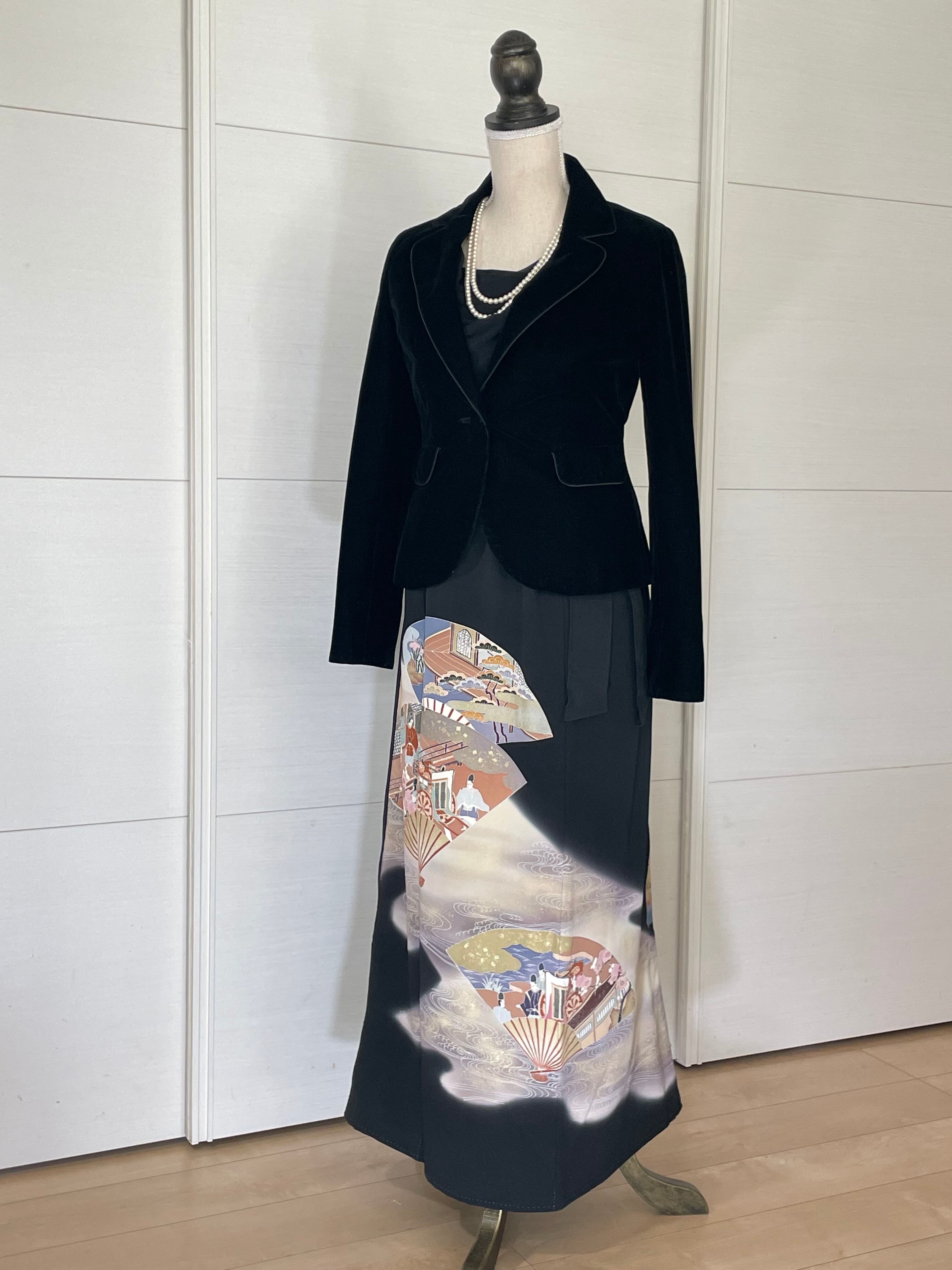 そんな貴方にぴったりな、黒留袖をリメイクしたロングスカート です。