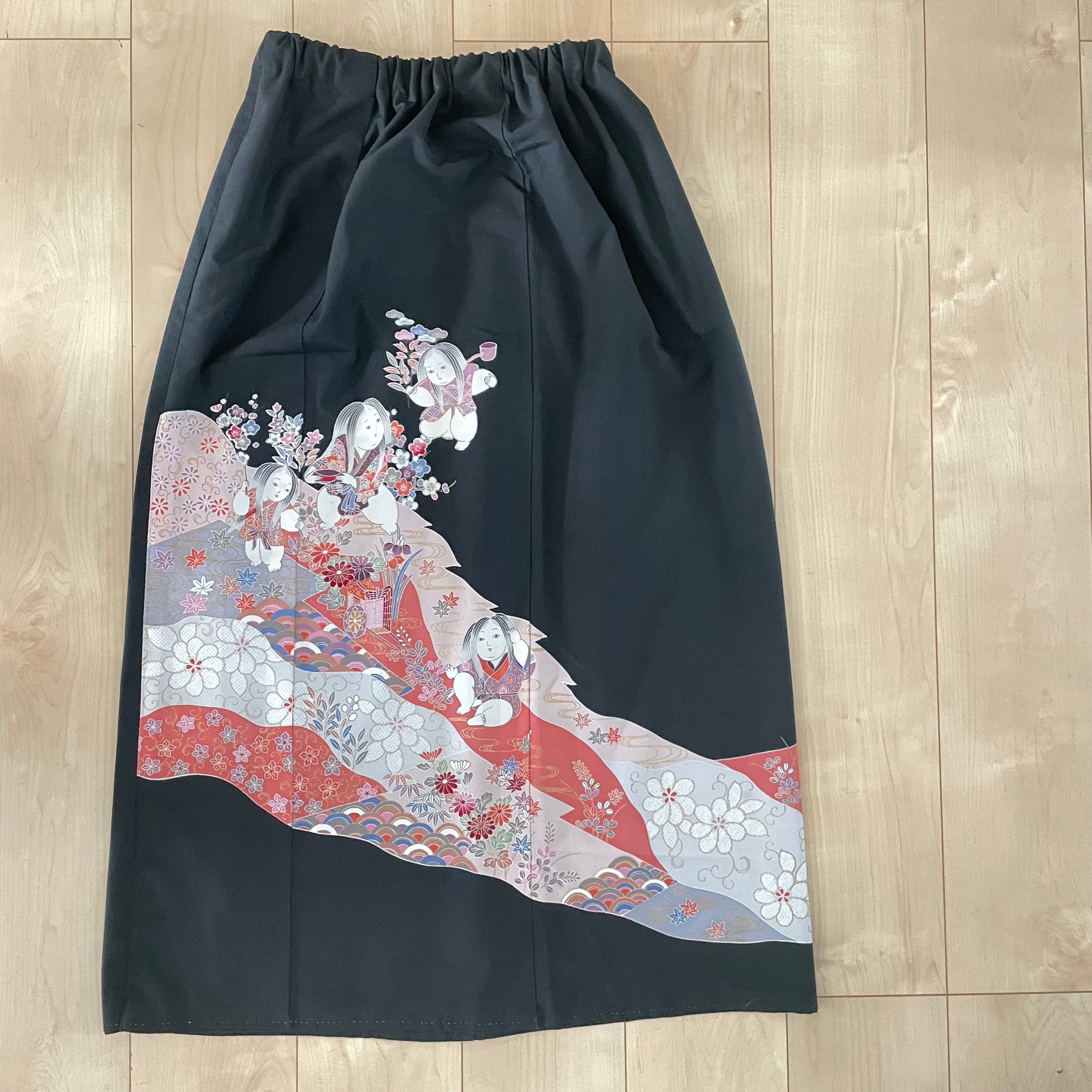 黒留袖リメイク 童 ロングスカート フリーサイズ 大きなサイズ