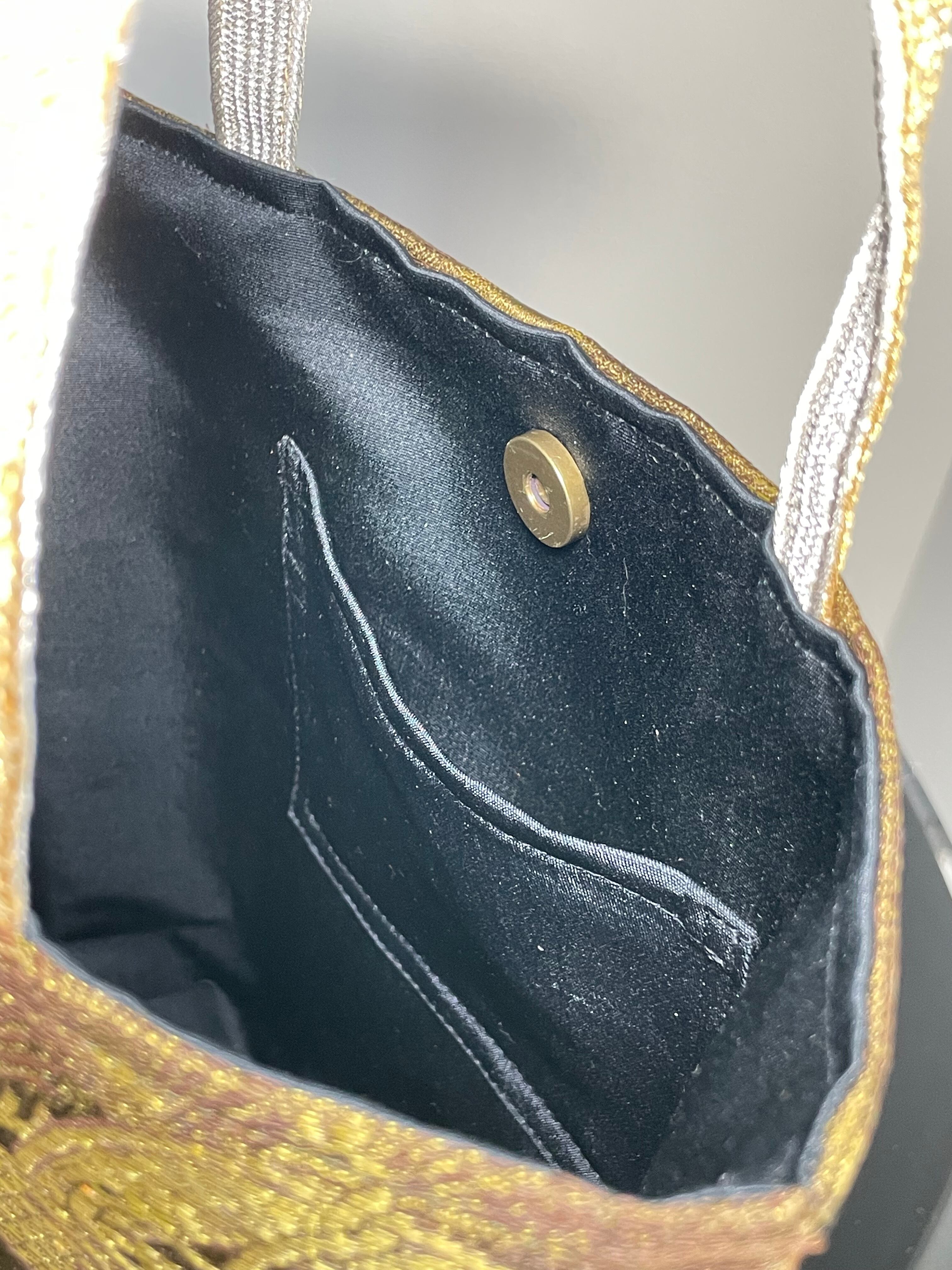 内布は帯の裏地を使用し、マグネットボタンとポケットをおつけしました。