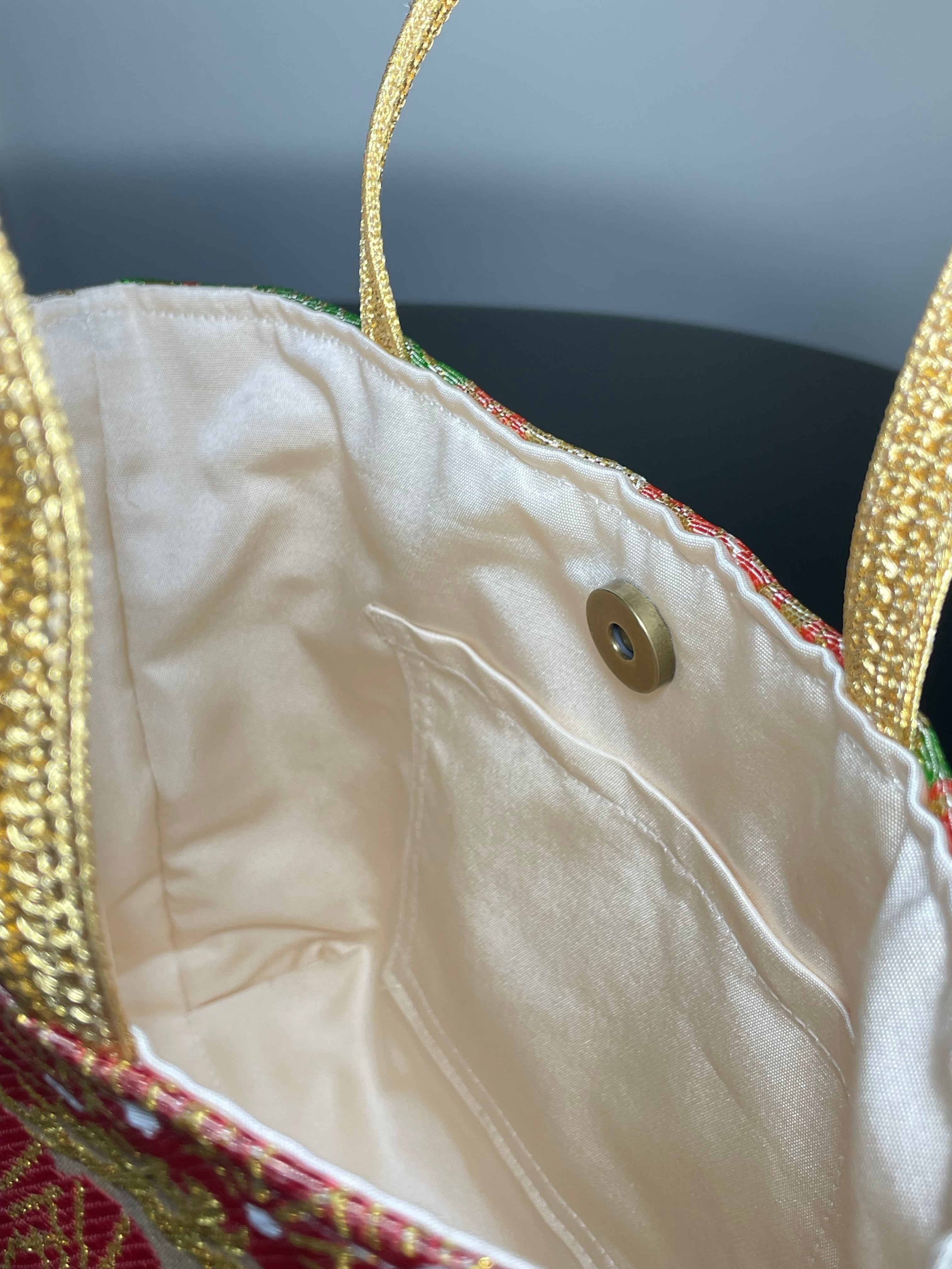 反物のまま保管されていた丸帯をトートバッグに作成いたしました。