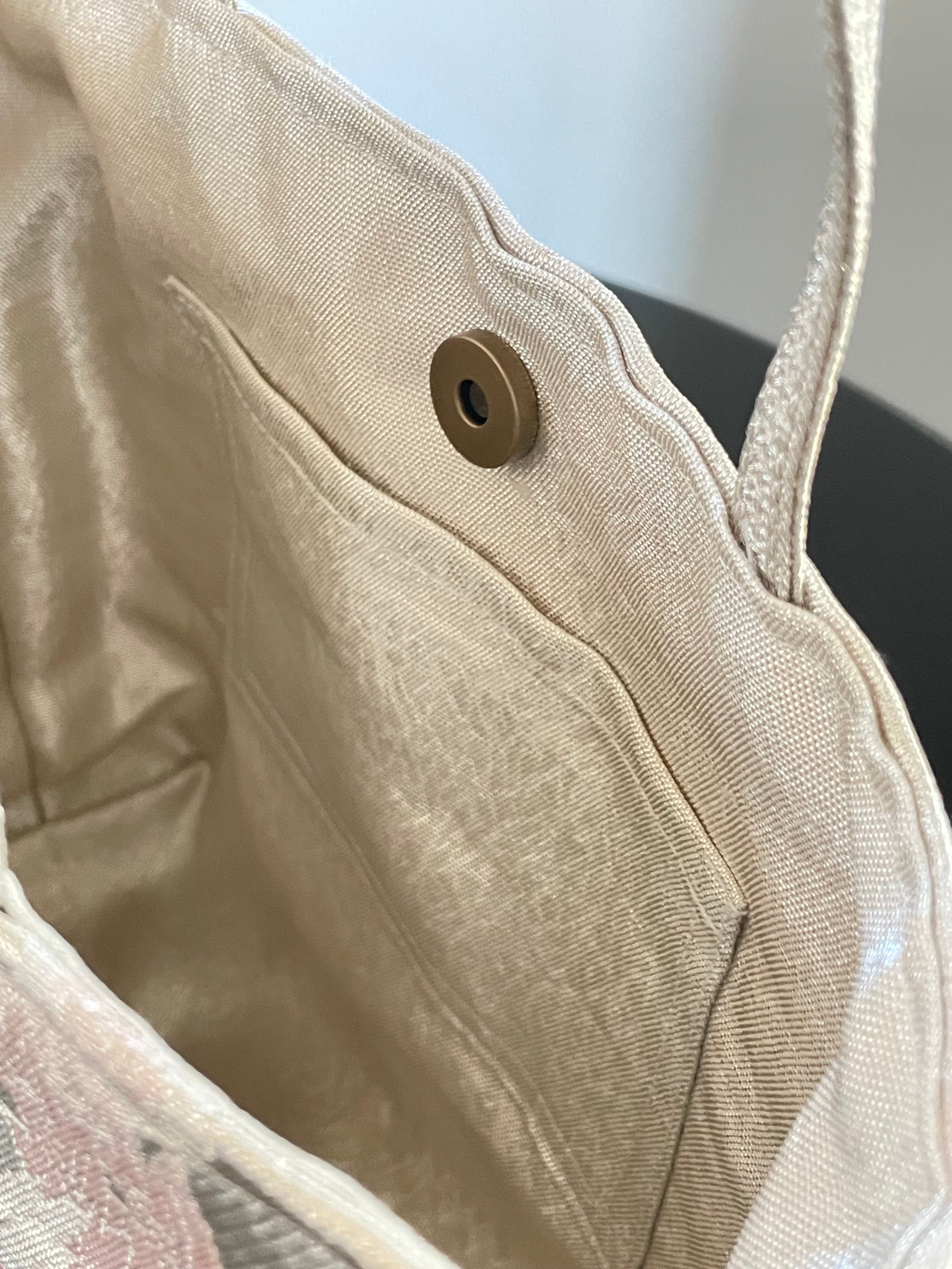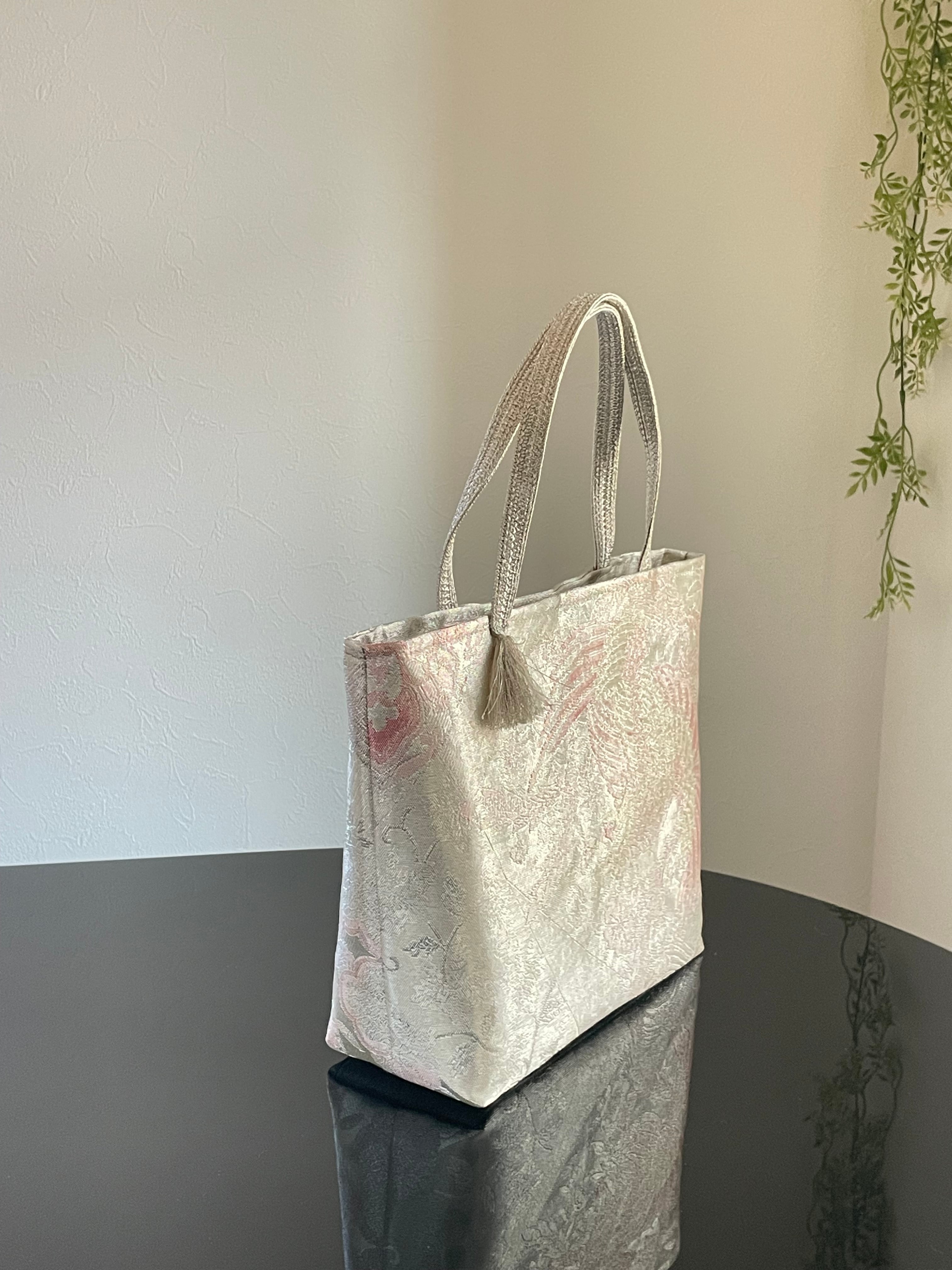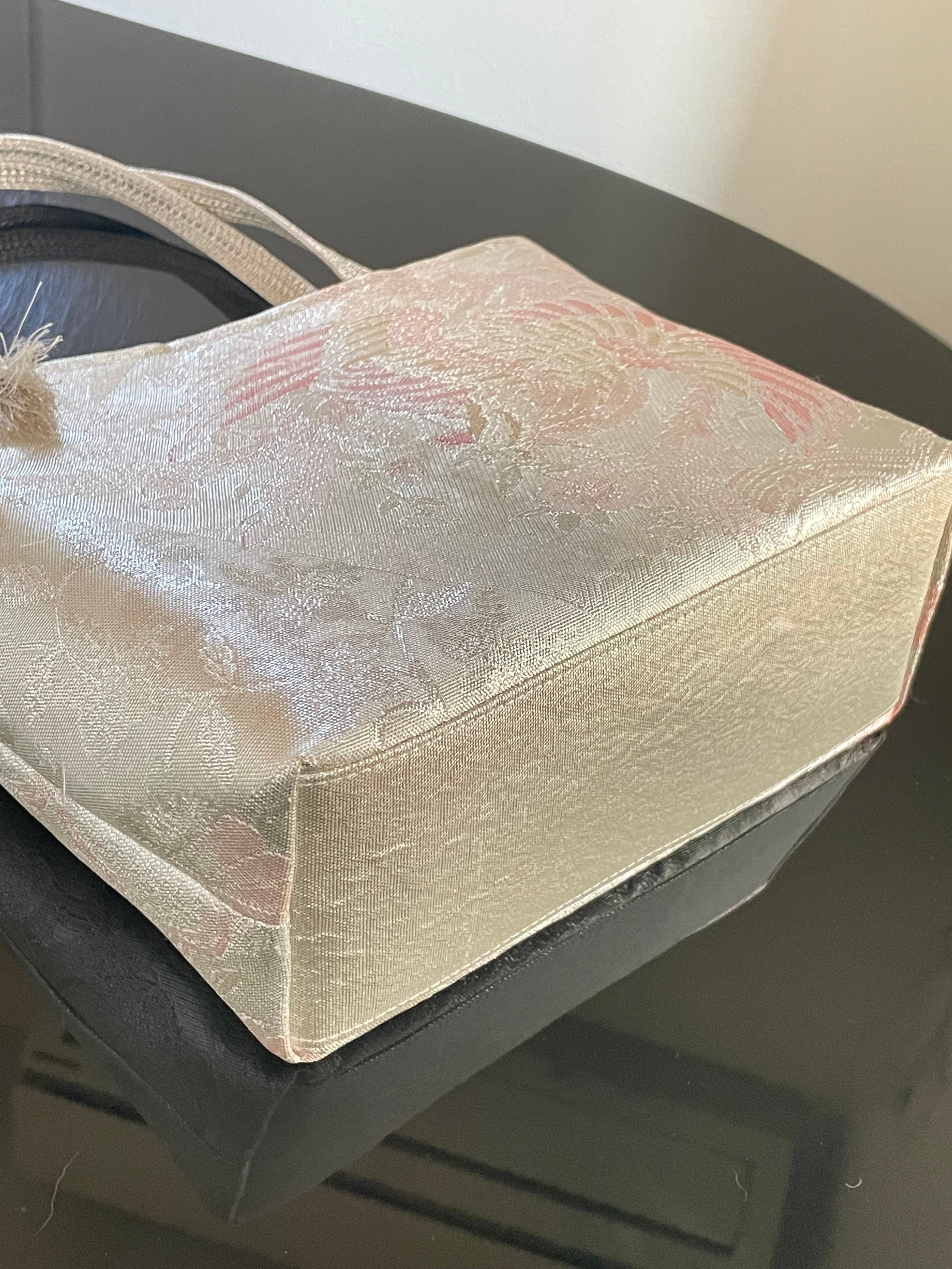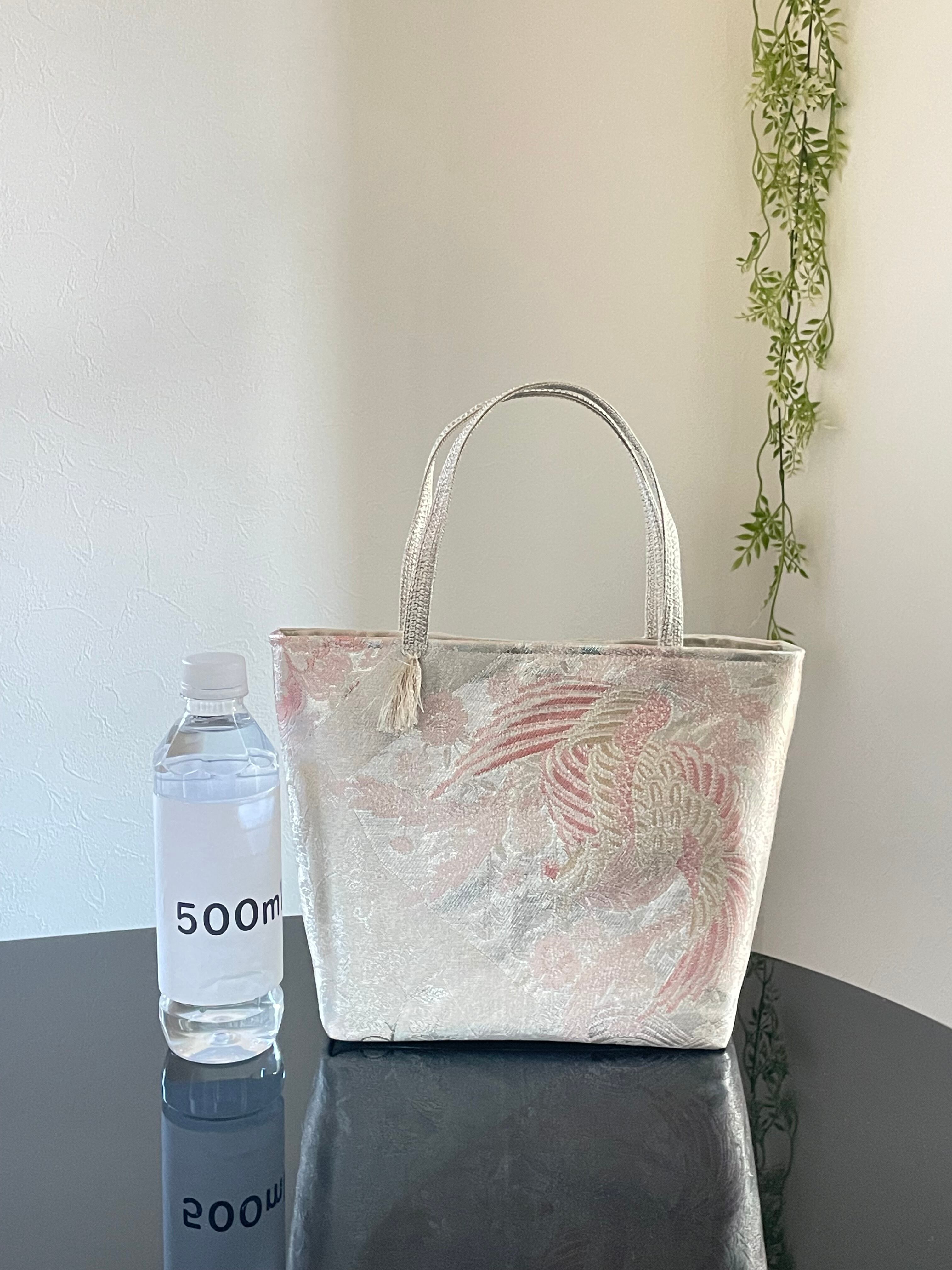 帯リメイクバッグ 九百織佐賀錦 ピンクの鳳凰と華文様 Mサイズ 和装バッグ
