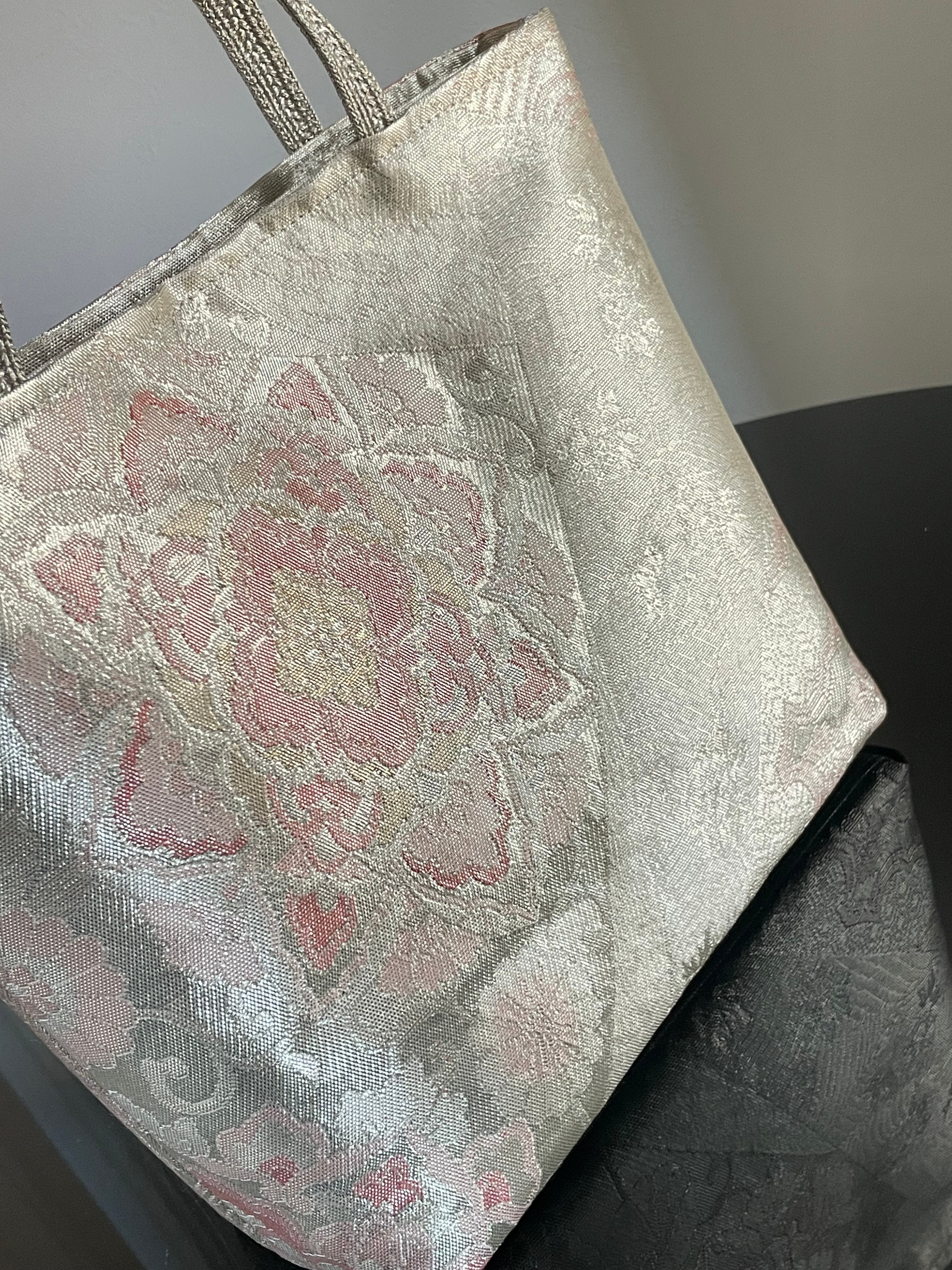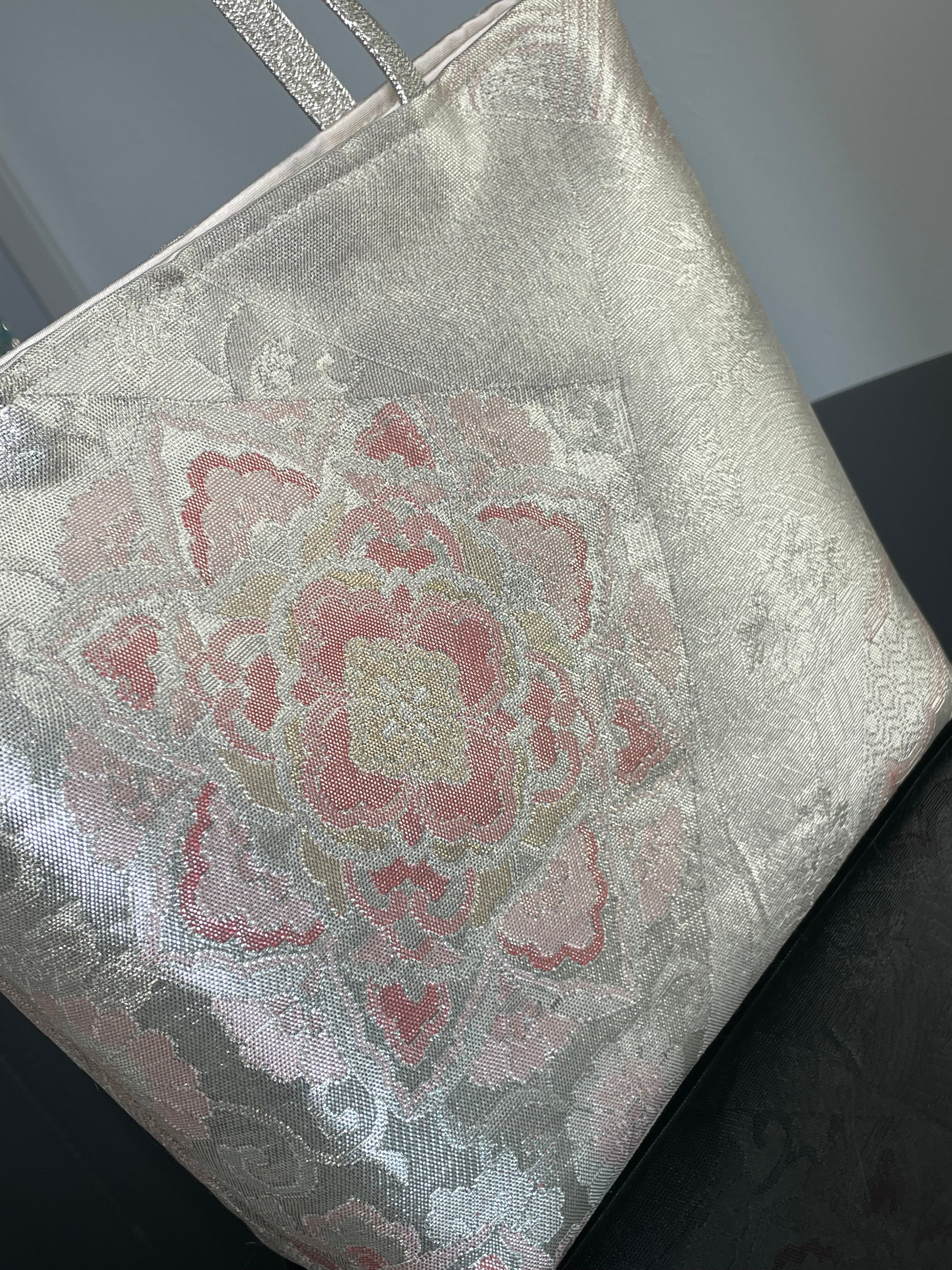 リユースの帯をリメイクして、トートバッグを作成いたしました。