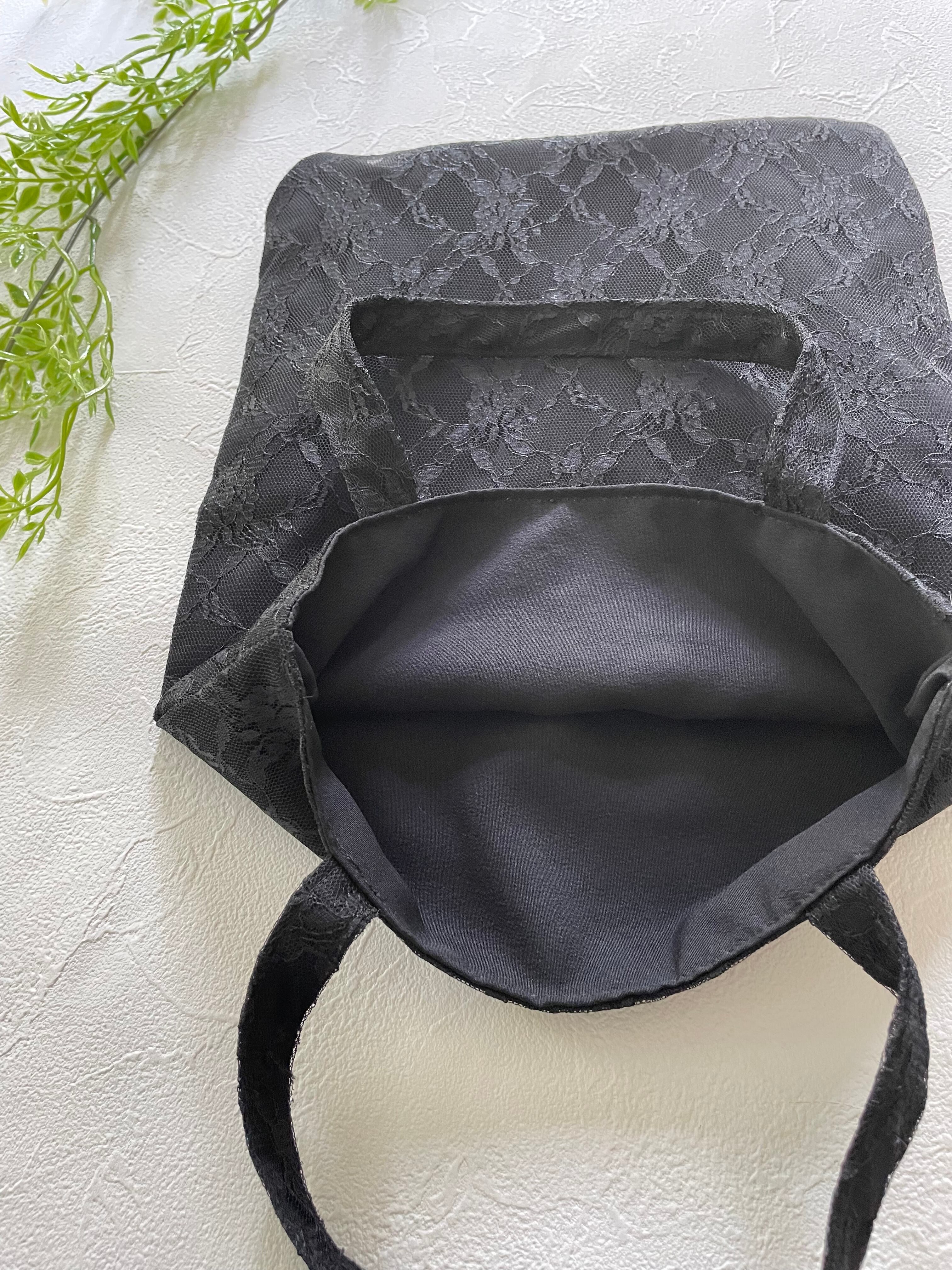 リバーシブルでお使いいただけますので、レース地に躊躇される場面では内布の黒を表にしてお使いください。