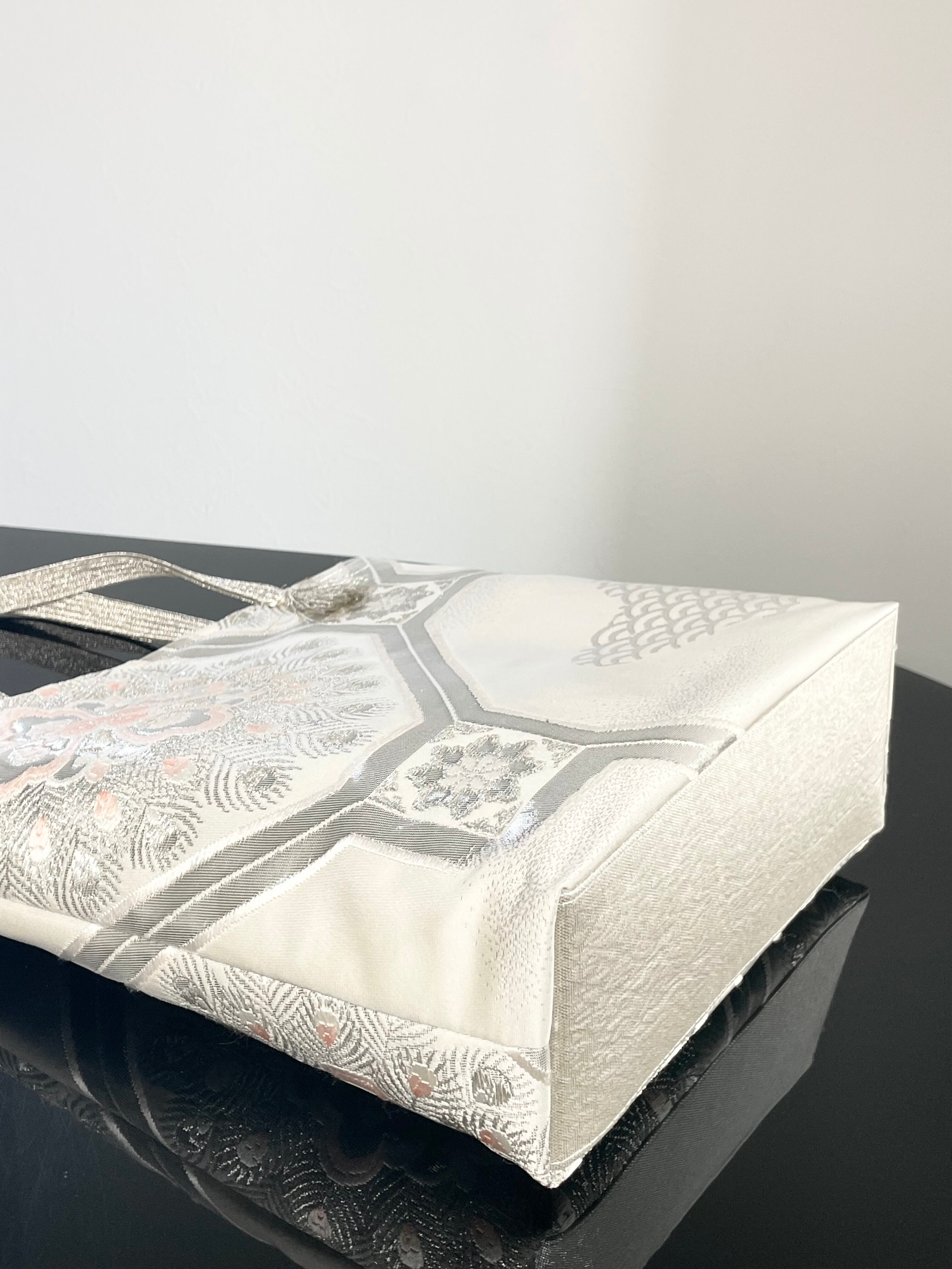 大変に状態の良いリユース帯をリメイ クし、トートバッグを作成いたしました。こちらはB5サイズです。