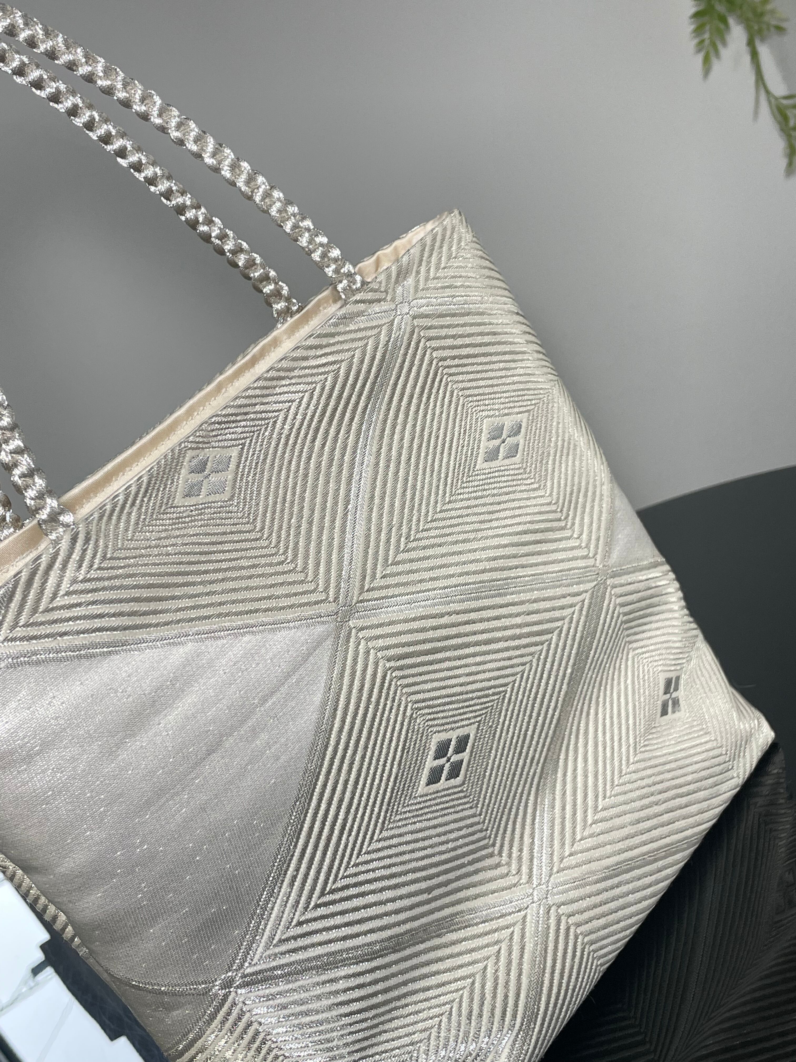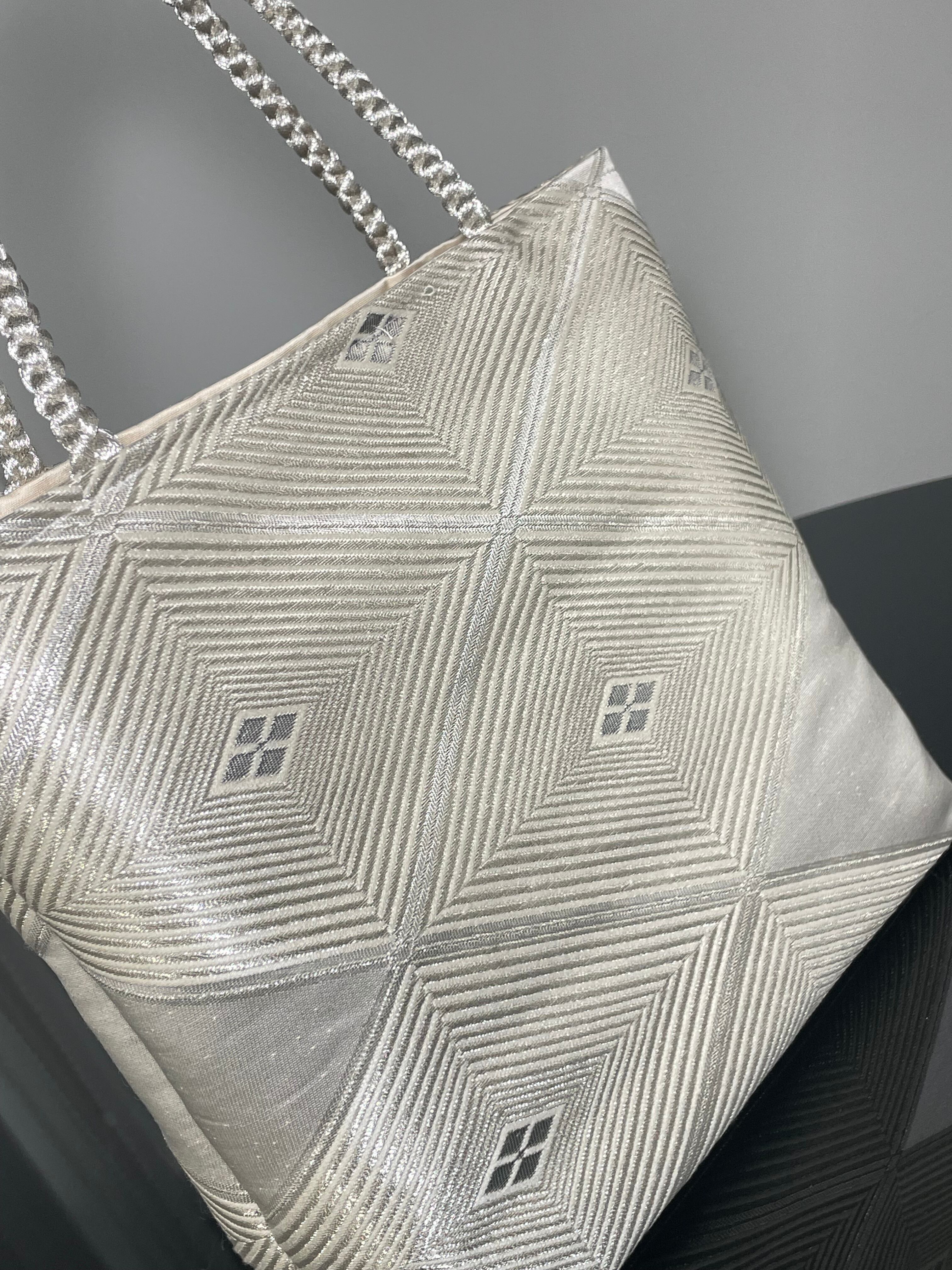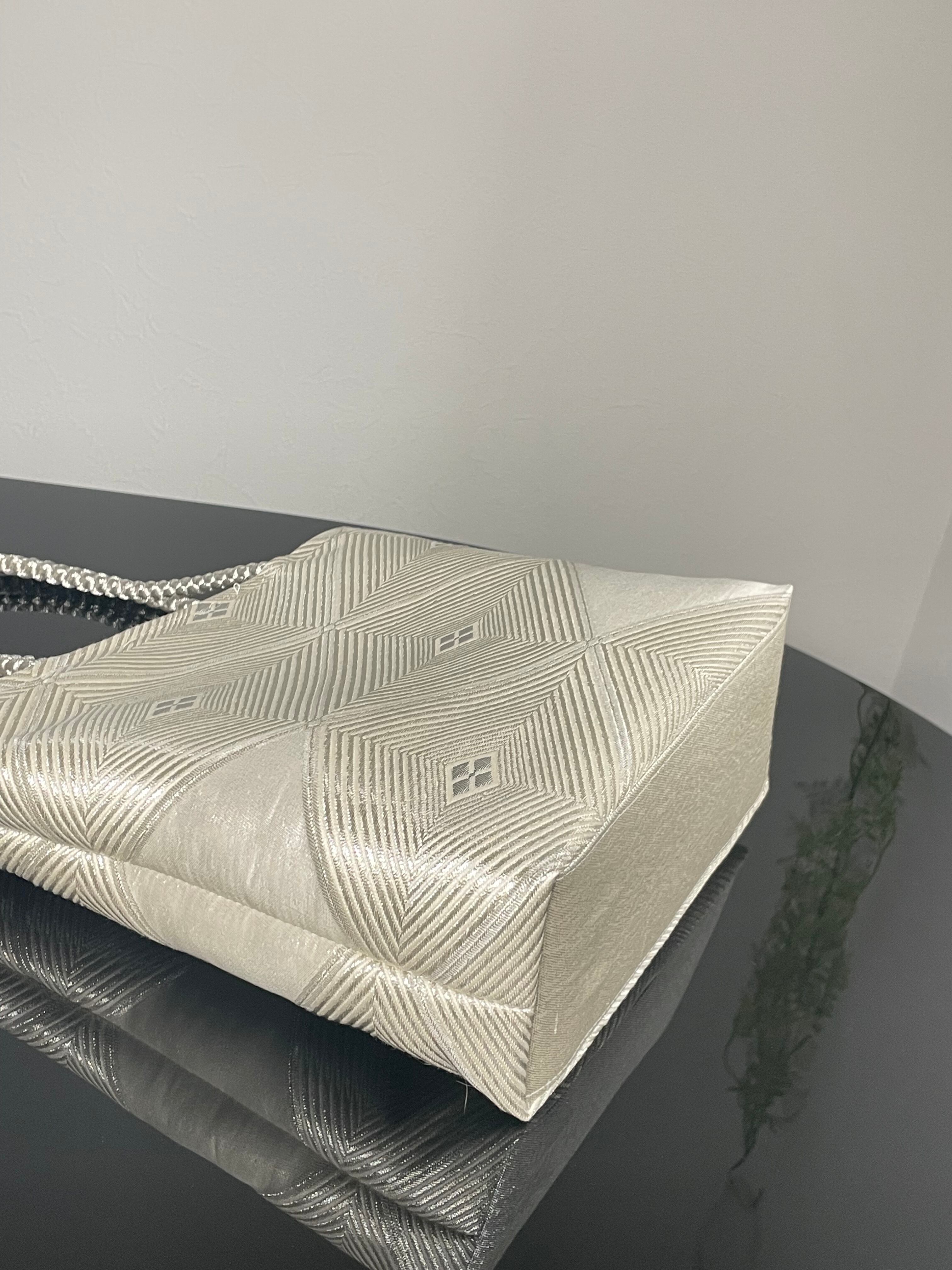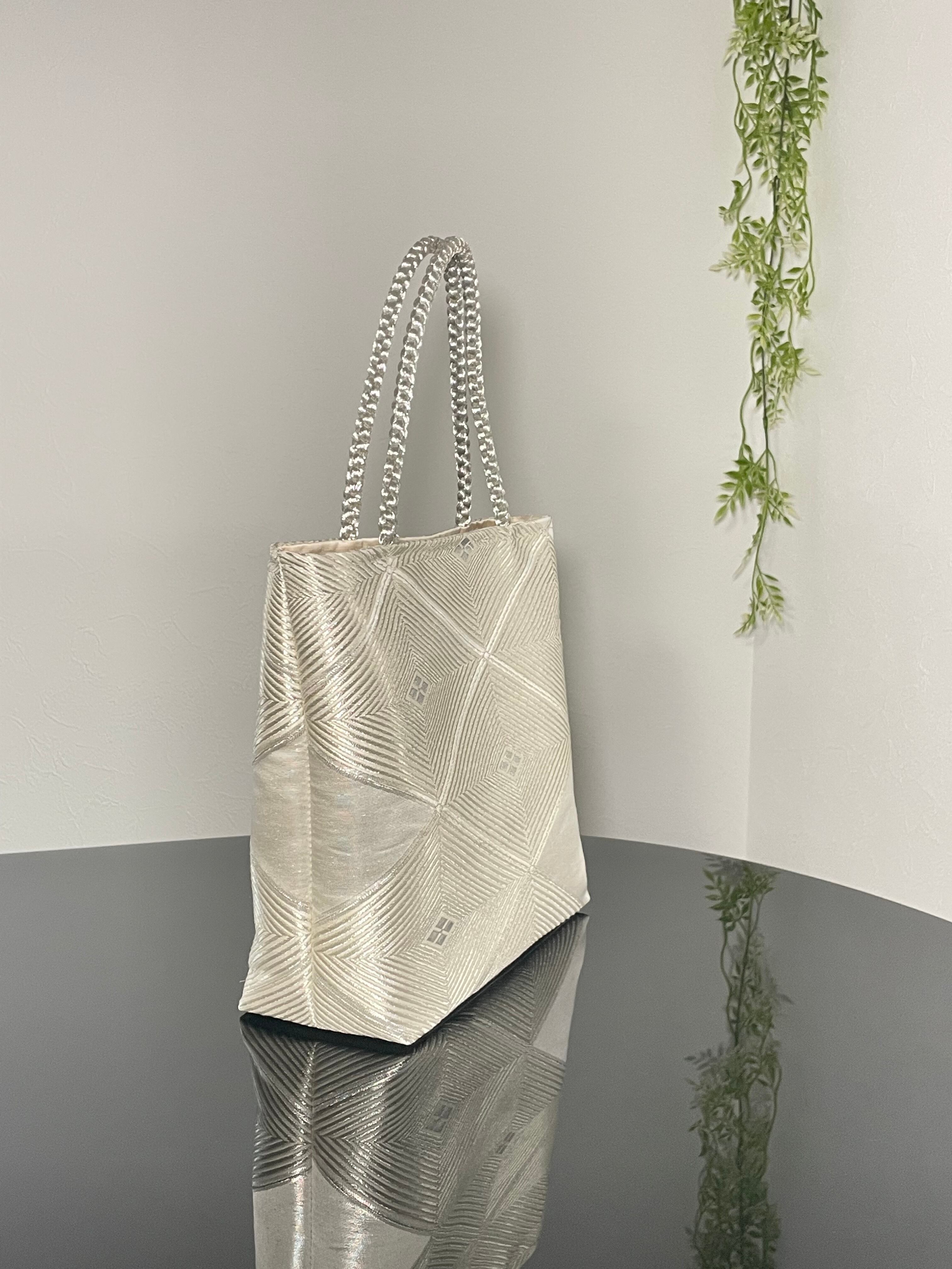 帯リメイクバッグ プラチナ箔 菱繋ぎ紋様 トートバッグ 和装バッグ